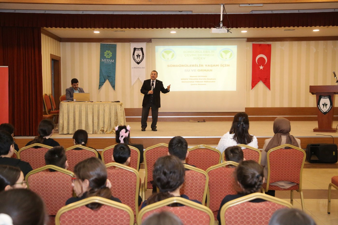 Program kapsamında; Geri Dönüşüm Günü, Ormancılık Günü, Dünya Su Günü, Meteoroloji Günü ve Sıfır Atık Günü’nün taşıdığı anlam ve önem öğrencilere çok yönlü bir içerikle aktarıldı. Su, toprak ve orman konusunda Sürdürülebilir Çevre Derneği Başkanı Namık Ceylan ile sıfır atık ve geri dönüşüm noktasında da Çevre Şehircilik ve İklim Değişikliği Konya İl Müdürlüğü’nden Neslihan Esmer ve Meram Belediyesi çevre uzmanlarının verdiği eğitimlerde, çevre sorunlarının küresel etkilerinden bireysel sorumluluklara kadar geniş bir perspektif sunuldu. Alanında uzman eğitmenler tarafından gerçekleştirilen sunumlarda; iklim değişikliğinin etkileri, doğal kaynakların bilinçli kullanımı, geri dönüşümün önemi ve sürdürülebilir yaşam alışkanlıkları detaylı şekilde ele alındı. Öğrenciler yalnızca dinleyen değil, sürece aktif katılan bireyler olarak etkinliğin merkezinde yer aldı.