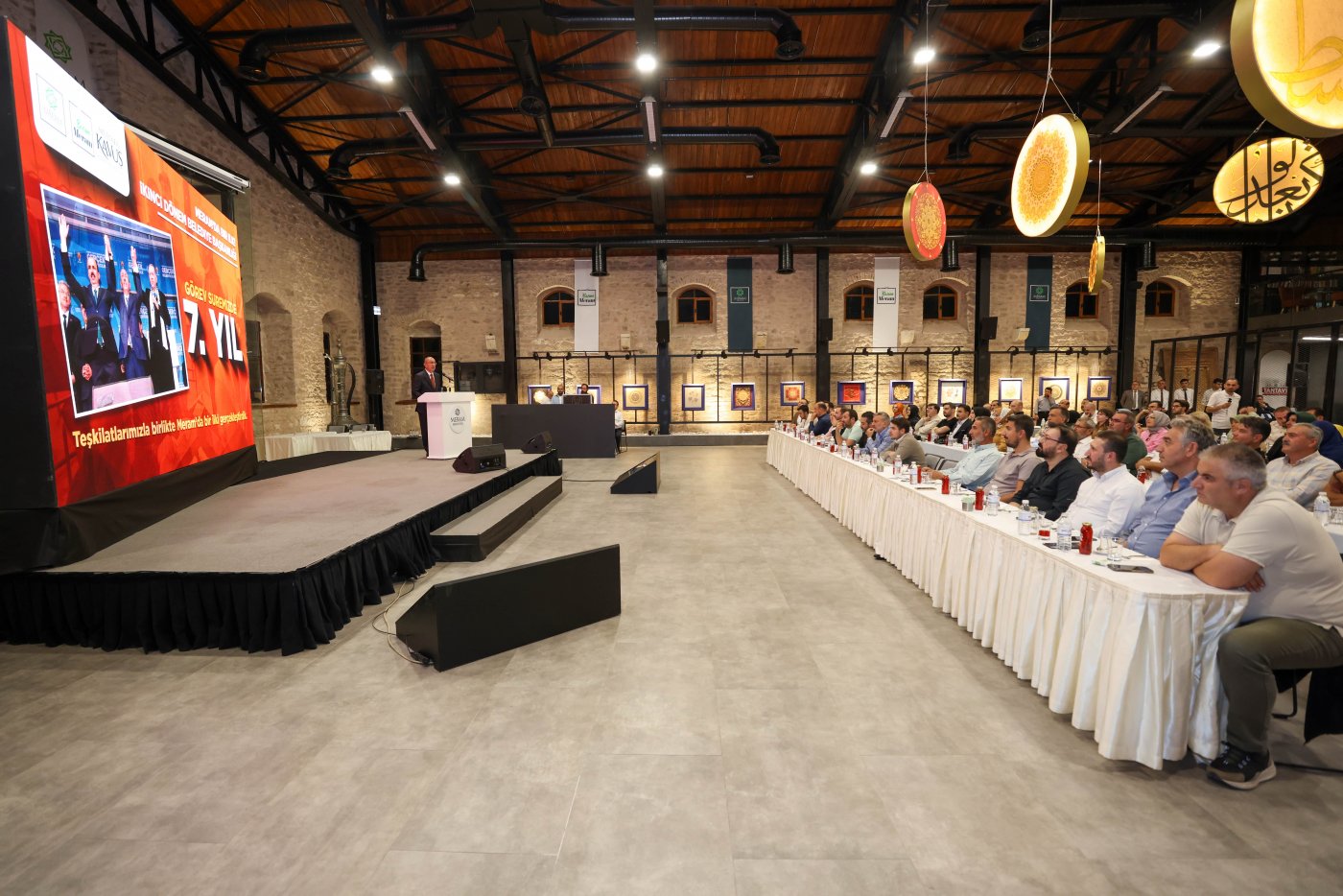Toplantıda konuşan Meram Belediye Başkanı Mustafa Kavuş ise, görevde bulunduğu son yedi yılın hizmet yolculuğunu teşkilat mensuplarıyla paylaştı. İkinci kez belediye başkanlığı görevine seçilmesinde teşkilatın gayreti ve desteğinin büyük rol oynadığını vurgulayan Kavuş, “Tevazu, samimiyet ve gayret ilkemizden ayrılmadan Meram’a hizmet etmeye devam ediyoruz.” dedi. Başkan Kavuş, özellikle kentsel dönüşüm ve tarihî miras yatırımlarına dikkat çekti. Sahipbata Mahallesi’ndeki Şükran Kentsel Dönüşüm Projesi’nde iki etabın tamamlandığını, üçüncü etabın ise sona yaklaştığını belirten Kavuş, kazılar sırasında gün yüzüne çıkarılan Selçuklu hamam kalıntısının jeodezik cam kubbe ile kapatılarak Konya’nın simge yapılarından biri haline getirileceğini söyledi. Ayrıca Lystra Antik Kenti kazılarında kentin ana kilisesi olduğu düşünülen yapının gün yüzüne çıkarılmasının Konya tarihi açısından büyük önem taşıdığını vurguladı.