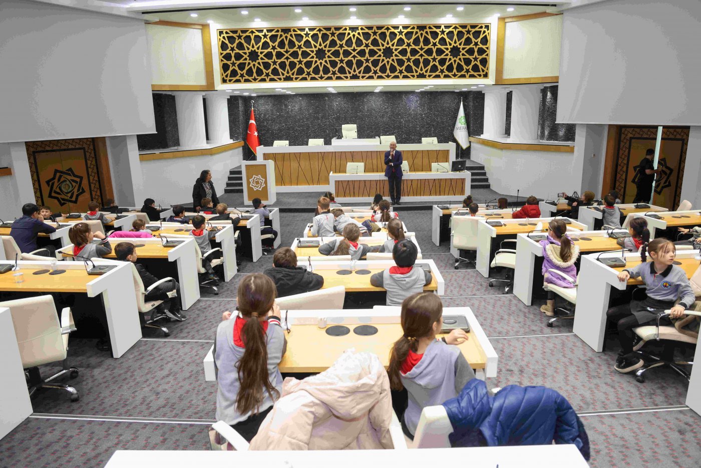 Meram Belediyesi, geleceğin bilinçli bireyleri olacak öğrencileri ağırladı. Meram Dr. Teoman Bilge İlkokulu ve Gündoğdu Koleji 2. sınıf öğrencileri, yerel yönetimler dersi kapsamında belediyeyi ziyaret ederek yerel yönetimlerin görevleri ve işleyişleri hakkında bilgi aldılar.