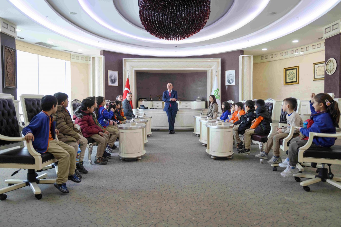Öğrencileri hem makam odasında hem de meclis salonunda ağırlayan Başkan Kavuş, yaptığı konuşmada çocuklara tavsiyelerde de bulundu. Onlara sadece meslek hedefi değil, karakter ve değerler üzerine de tavsiyelerde bulunan Başkan Kavuş, “En büyük hedefiniz iyi insan olmak olmalı. Gerisi ondan sonra gelir. İşte o zaman iyi bir mühendis, iyi bir doktor, iyi bir anne baba olursunuz.” diye konuştu. Belediye çalışmalarını onların anlayabileceği bir dilde anlatan Başkan Kavuş, “Hepinizin gözlerinden öpüyorum. Ülkemize, milletimize faydalı iyi insanlar olarak yetişirsiniz inşallah.” ifadelerini kullandı.