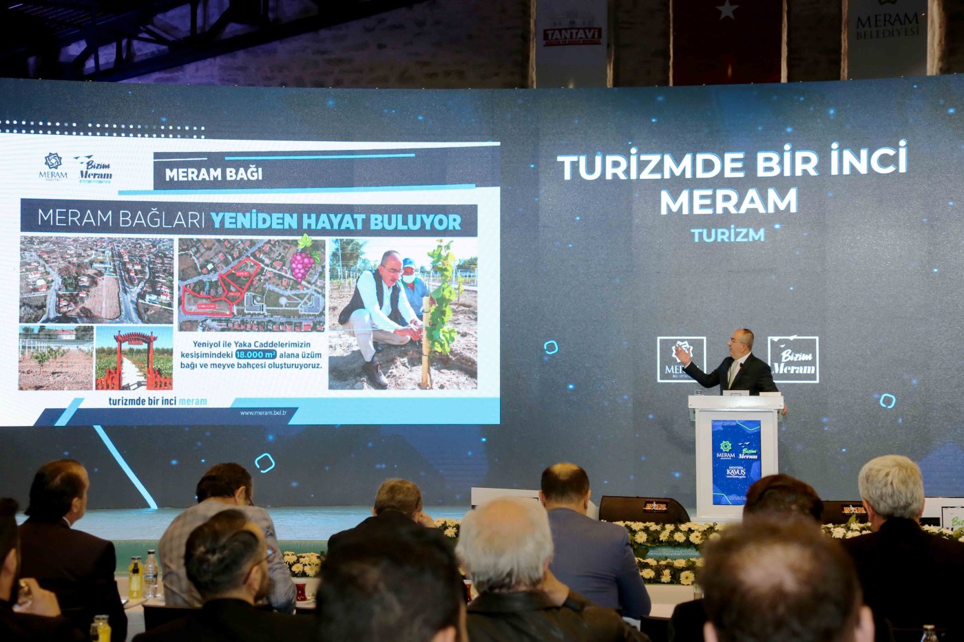 Meram Belediyesi’nin şehre kazandırdığı Tantavi Kültür ve Sanat Merkezi’nin şehrin kültür, sanat hayatına önemli bir katkı sunduğunu belirten Başkan Mustafa Kavuş, merkezin açıldığı 15 Haziran 2019 tarihinden bu yana, sergi, seminer, konferans, panel gibi 183 ayrı etkinliğe ev sahipliği yaptını ifade etti. Özellikle geleneksel sanatlar için önemli bir fırsat sunan merkezin sanatseverlerin uğrak yeri haline geldiğini söyleyen Başkan Kavuş, konuşmasına şöyle devam etti; “Meram’da sadece kültür ve sanat değil, tarih de yeniden canlanıyor. Bu kapsamda başlattığımız çalışma ile Lystra Antik Kenti ile bir tarih, binlerce yıl sonra yeniden gün yüzüne çıkacak. Hatunsaray Mahallemizde, pek çok önemli uygarlığa ev sahipliği yapmış olan Lystra Antik Kenti, Kültür ve Turizm Bakanlığı’nın izni, Meram Belediyemiz ve Necmettin Erbakan Üniversitesi işbirliği ile adeta yeniden hayat bulacak. Turizme sunacağımız katkı bununla sınırlı değil tabi. Meram Yaka Caddesi ile Yeni Meram Caddesinin kesişiminde bulunan 18 bin metrekarelik alana üzüm bağı ve meyve bahçesi oluşturuyoruz. Meram Bağları’nı yeniden canlandıracak projemiz de ilçemizin turizmine önemli yarar sağlayacak. Tüm etaplardaki çalışmalarımızın tamamlanmasıyla Meram Bağı şehrimizde turizmin yeni lokasyonu haline gelecek.”