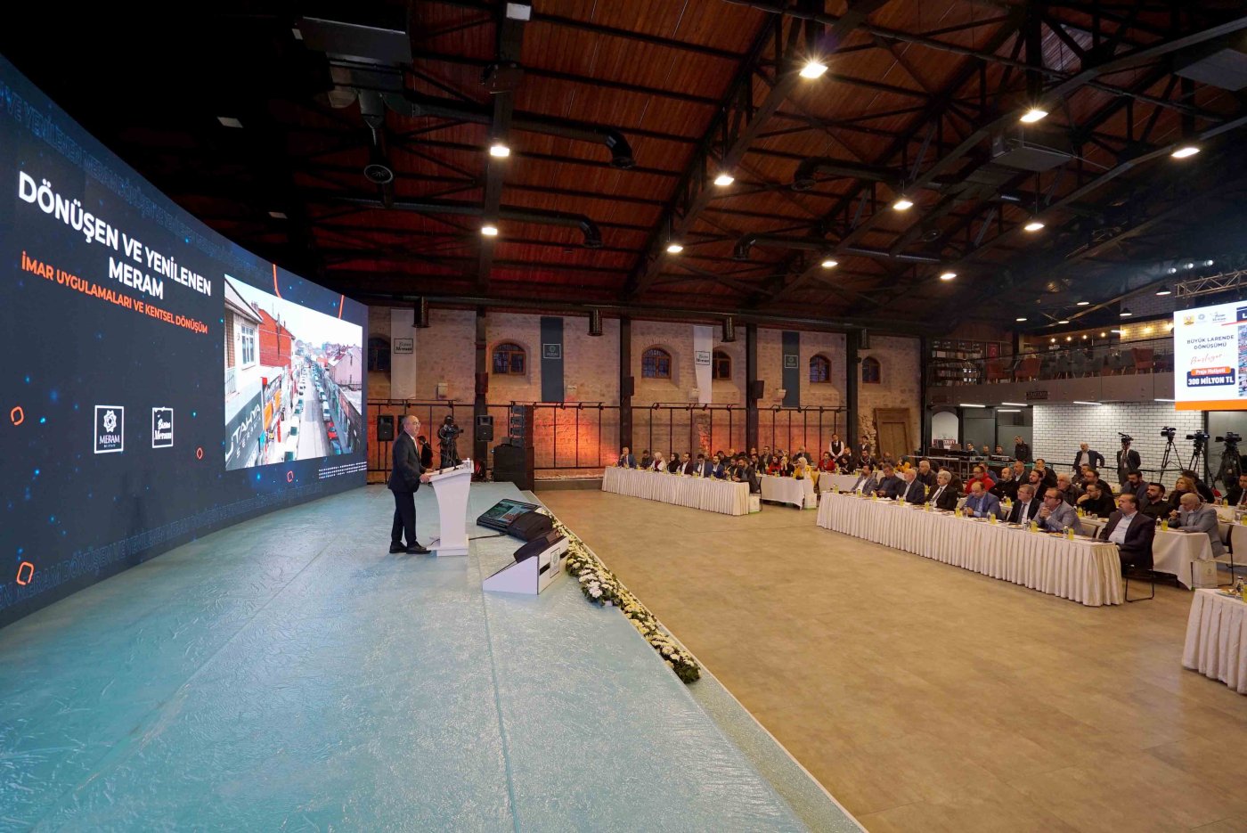 Son 3 yılda Meram’ı adeta yeniden imar ettiklerini ifade eden Başkan Mustafa Kavuş, toplam 20 milyon metrekarelik alanda 25 mahalle ve 20 bin maliki ilgilendiren 18. madde uygulamasının devam ettiğini ifade etti. Bunlardan 13 milyon 724 bin 496 metrekarelik alanda 18. madde uygulamasının tamamlanarak toplamda 16 bin 365 kişinin tapularını teslim ettiklerini belirten Başkan Kavuş, “Diğer taraftan Konya’nın kalbinde başlattığımız Şükran Dönüşüm Projesi tüm hızıyla devam ediyor. 119 bin 200 metrekare alana sahip Sahibata Mahallesi Şükran Dönüşüm Projemiz, 1. Etap TOKİ alanı, 2. etap Üst Adalar, 3. etap proje alanı, 4. etap Larende ve 5. etap Tescilli Ada alanlarını kapsıyor. Projenin tamamlanmasıyla birlikte şehrimizin merkezinde önemli bir sosyal yaşam alanı ortaya çıkacak.Konya Büyükşehir Belediyesi ve Meram Belediyesi iş birliğiyle hayata geçirdiğimiz Büyük Larende Dönüşüm Projesi ile şehrin merkezi rahat bir nefes alacak. Bu kapsamda bölgede hizmet veren 73 esnaf kendileri için tahsis edilen yeni alanlarında uygun ödeme imkanlarıyla dükkan sahibi olacak. Diğer taraftan konut açığını kapatmak ve hemşehrilerimizin daha kaliteli yapılara kavuşmasına imkan sağlamak adına Bizim Meram’da hayat bulan ‘büyük konut hamlemiz’ de dalga dalga büyüyor. Uluırmak, Aymanas ve Aksinne Evleri konut yapı kooperatifleri’ne ek olarak kurduğumuz Turgutreis, Fahrünnisa ve Piri Reis Evleriyle toplam 5419 daire sayısına ulaştık. Bir müjdeyi de buradan vereyim; konut hamlemize bir halka daha ekliyoruz. Bunun ayrıntılarını da önümüzdeki günlerde kamuoyuyla paylaşacağız” şeklinde konuştu.