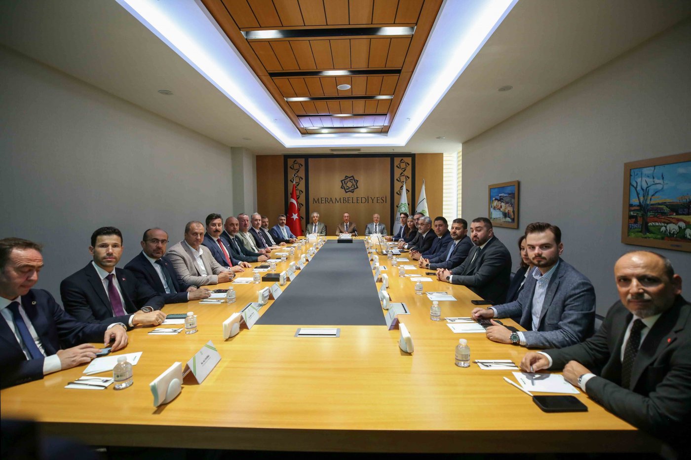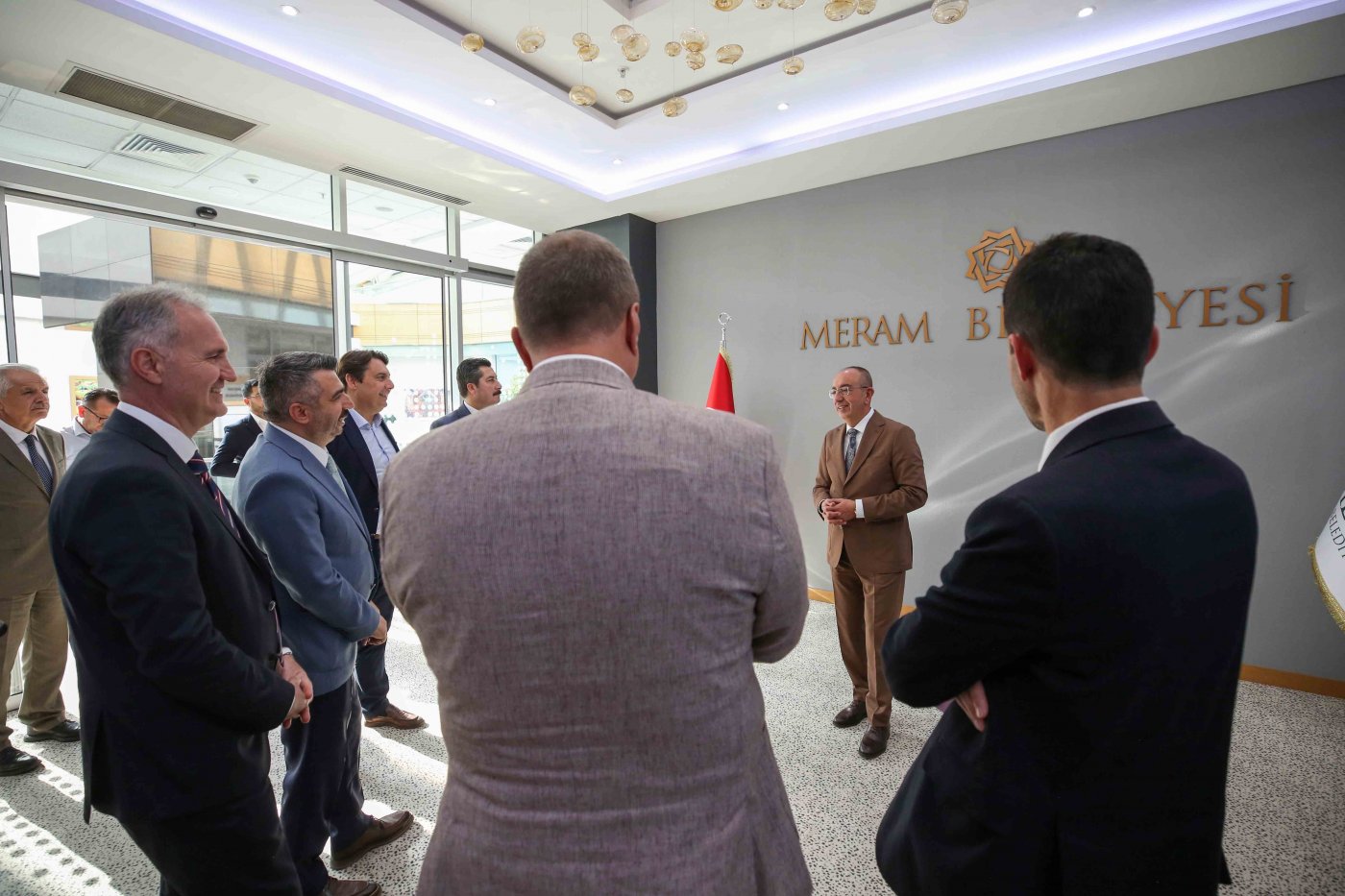Meram Belediye Başkanı Mustafa Kavuş, AK Parti Bursa İl Başkanı Davut Gürkan ve Bursa’nın on bir ilçe belediye başkanını ağırladı. Başkan Kavuş, tecrübe paylaşımı için şehre gelen Bursa heyetine, Meram’ın şehirleşme vizyonunu ve kentsel dönüşümde yakaladığı başarı hikayesini anlattı. Kavuş ayrıca son yıllarda gerçekleştirilen yatırımlar özellikle de kentsel dönüşüm projeleri ve belediye öncülüğünde hayata geçirilen kooperatif çalışmaları hakkında heyete bilgi verdi.