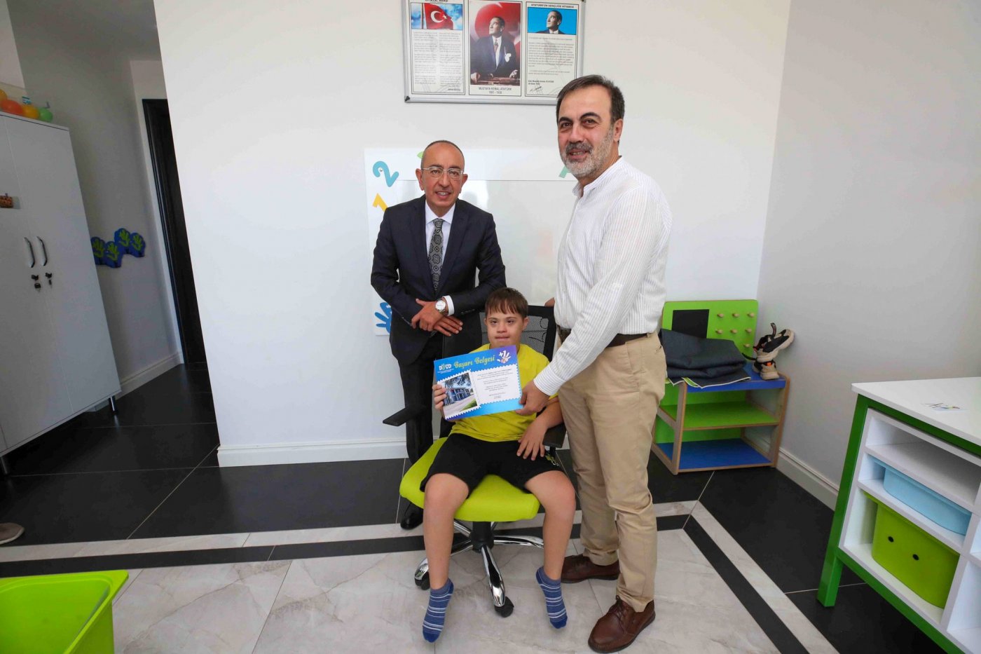 Konya Ticaret Odası (KTO) Başkanı Selçuk Öztürk KTO Yönetim Kurulu ile birlikte Meram Belediyesi tarafından hayata geçirilen ve down sendromlu bireylere özel eğitim sunan Down Sendromlu Bireyler Yaşam Destek Merkezi DOSD Meram’ı ziyaret etti. Ziyarette Selçuk Öztürk ve KTO Yönetim Kurulu’na Meram Belediye Başkanı Mustafa Kavuş ve DOSD Meram Dernek Başkanı Mehmet Munlafalıoğlu da eşlik etti. Kavuş, Öztürk ve Munlafalıoğlu merkezi gezerek, burada eğitim gören çocuklar ve aileleriyle hasbihal ettiler. DOSD Meram’da eğitim gören çocuklar, tatil öncesinde başarı sertifikalarını Başkan Kavuş, Başkan Munlafalıoğlu ve Başkan Öztürk’ün ellerinden almanın mutluluğunu yaşadılar.