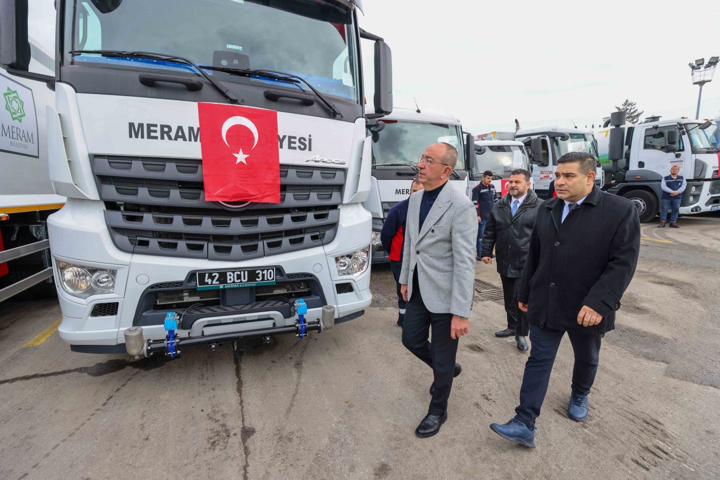 Meram Belediyesi, ilçede artan nüfus, genişleyen yerleşim alanları ve değişen katı atık toplama ihtiyaçları doğrultusunda araç filosunu güçlendirmeyi sürdürüyor. Bu kapsamda belediye envanterine; çöp kamyonları, vinçli çöp kamyonları, yol süpürme aracı, vidanjör, arazöz, sıfır atık toplama araçları ve semi traıler tırlar olmak üzere toplam 13 yeni araç dahil edildi.