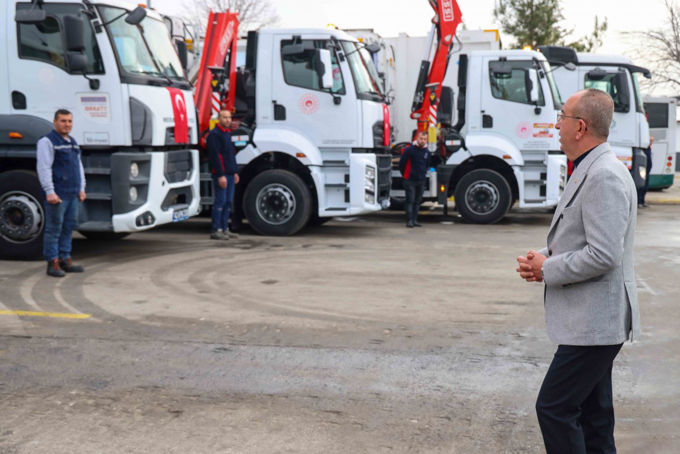 Araçların tanıtımında personeliyle de sohbet eden Başkan Kavuş, direksiyon başına geçerek ye araçları test etti.