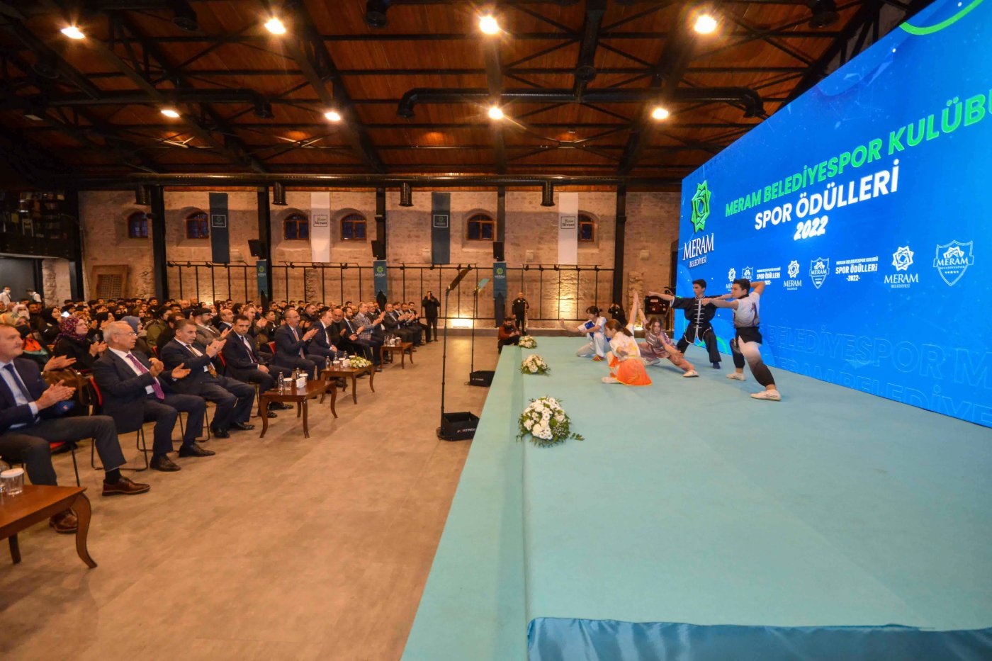 Son üç yılda ulusal ve uluslararası şampiyonalarda mücadele ederek madalyalar kazanan Meram Belediyesporlu sporcular ödüllendirildi. Tantavi Kültür ve Sanat Merkezinde gerçekleştirilen törene Gençlik ve Spor Bakanlığı Spor Hizmetleri Genel Müdürü Mehmet Baykan, AK Parti Konya İl Başkanı Hasan Angı, Meram Kaymakamı Ali Murat Kayhan, Konya Büyükşehir Belediye Başkan Vekili Mustafa Uzbaş, Meram Belediye Başkanı Mustafa Kavuş, Türkiye Taekwondo Federasyonu Başkanı Prof. Dr. Metin Şahin, Gençlik ve Spor İl Müdürü Abdurrahman Şahin, Selçuklu Belediye Başkanı Vekili Faruk Ulular, Konyaspor Kulüp Başkanı Fatih Özgökçen, AK Parti Meram İlçe Başkanı Mustafa Dolular, AK Parti Meram İlçe Kadın Kolları Başkanı Serpil Yurdaışık, Ak Parti Meram Gençlik Kolları Başkanı Hasan Hüseyin Ülkü, ASKF Konya Şube Başkanı Remzi Ay, TSYD Konya Şube Başkanı Murat Dönmez, Meram Belediyespor Kulüp Başkanı Muhammed Işık, meclis üyeleri, sporcular, aileleri ve antrenörleri katıldı. İstiklal Marşı ve saygı duruşu ile başlayan törende Meram Belediyespor’un tarihini ve başarılarını anlatan sinevizyon gösterisi ekrana yansıtıldı. Yine törende Meram Belediyespor Wushu takımı gösteri gerçekleştirirken salondakilerden büyük alkış aldı.