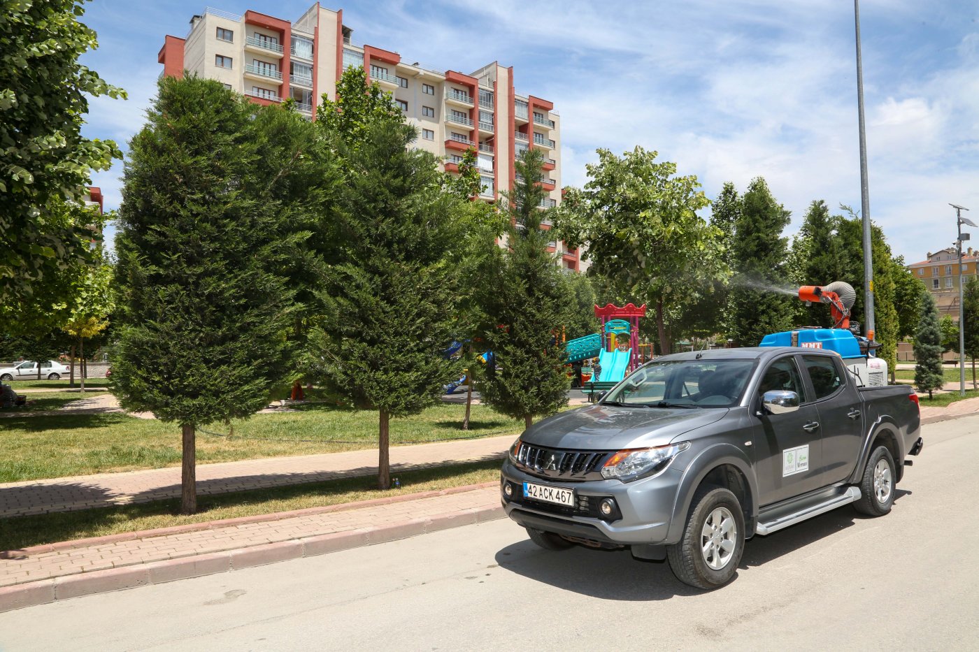 Meram Belediyesi, ilçede yaşayan vatandaşların daha sağlıklı ve daha rahat bir yaz mevsimi geçirebilmeleri adına ilaçlama çalışmalarına hız verdi. Özellikle yeşil alanlarda yürütülen ilaçlama çalışmaları program dahilinde periyodik olarak devam ediyor.