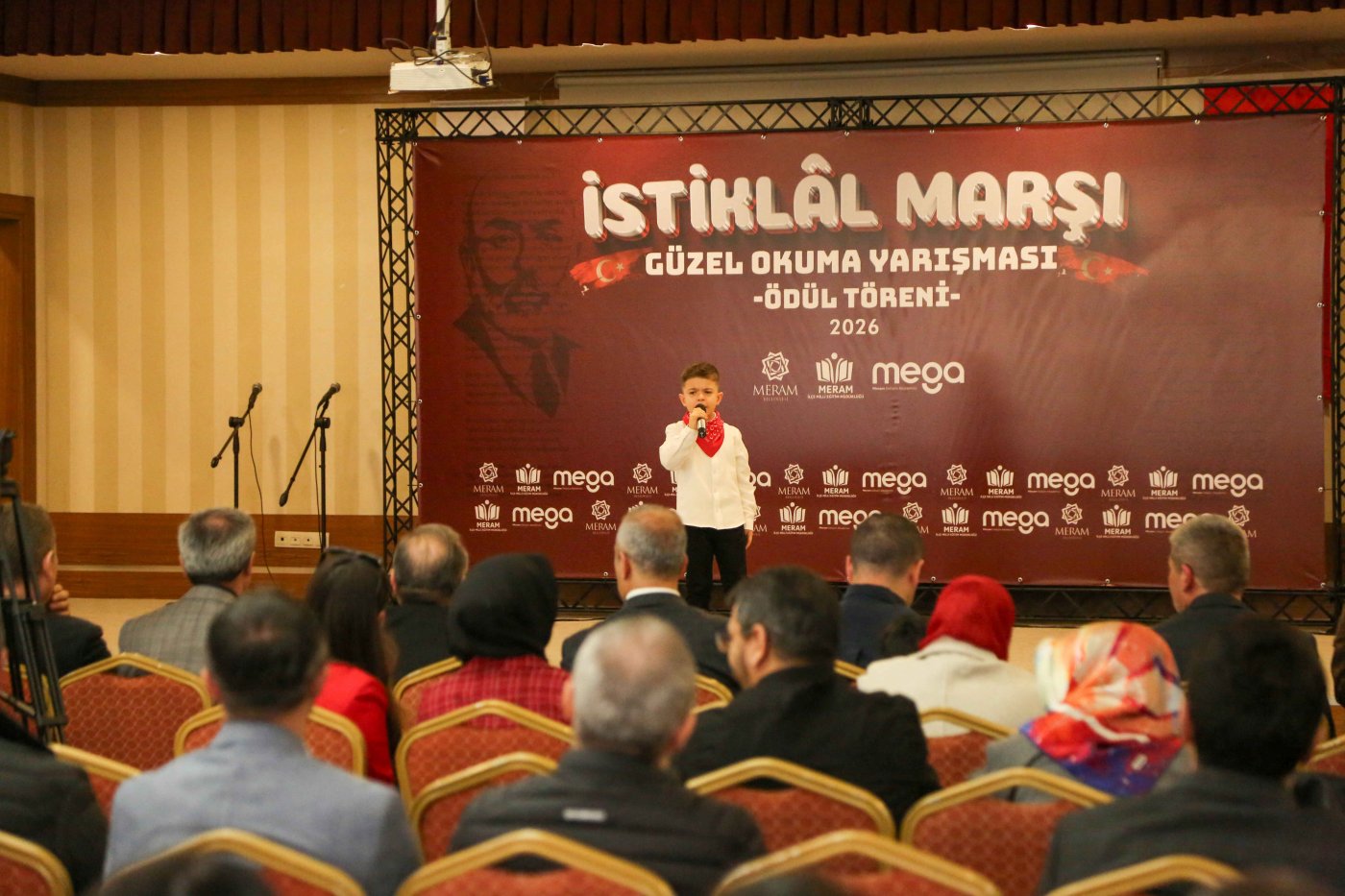Meram Belediyesinin MEGA Projesi kapsamında geleneksel hale getirdiği 'İstiklal Marşı Güzel Okuma Yarışması' yine duygu ve gurur dolu anlara sahne oldu. Meram Belediyesi ve Meram İlçe Milli Eğitim Müdürlüğü iş birliğiyle düzenlenen program Mehmet Beğen Ortaokulu’nda gerçekleştirildi. Programa Meram Kaymakamı Dr. Bayram Yılmaz, Meram İlçe Milli Eğitim Müdürü Erkan Yakışır, Eğitim-Bir-Sen Meram Temsilcisi Cavit Arıtürk, okul idarecileri, öğretmenler, veliler ve çok sayıda öğrenci katıldı.