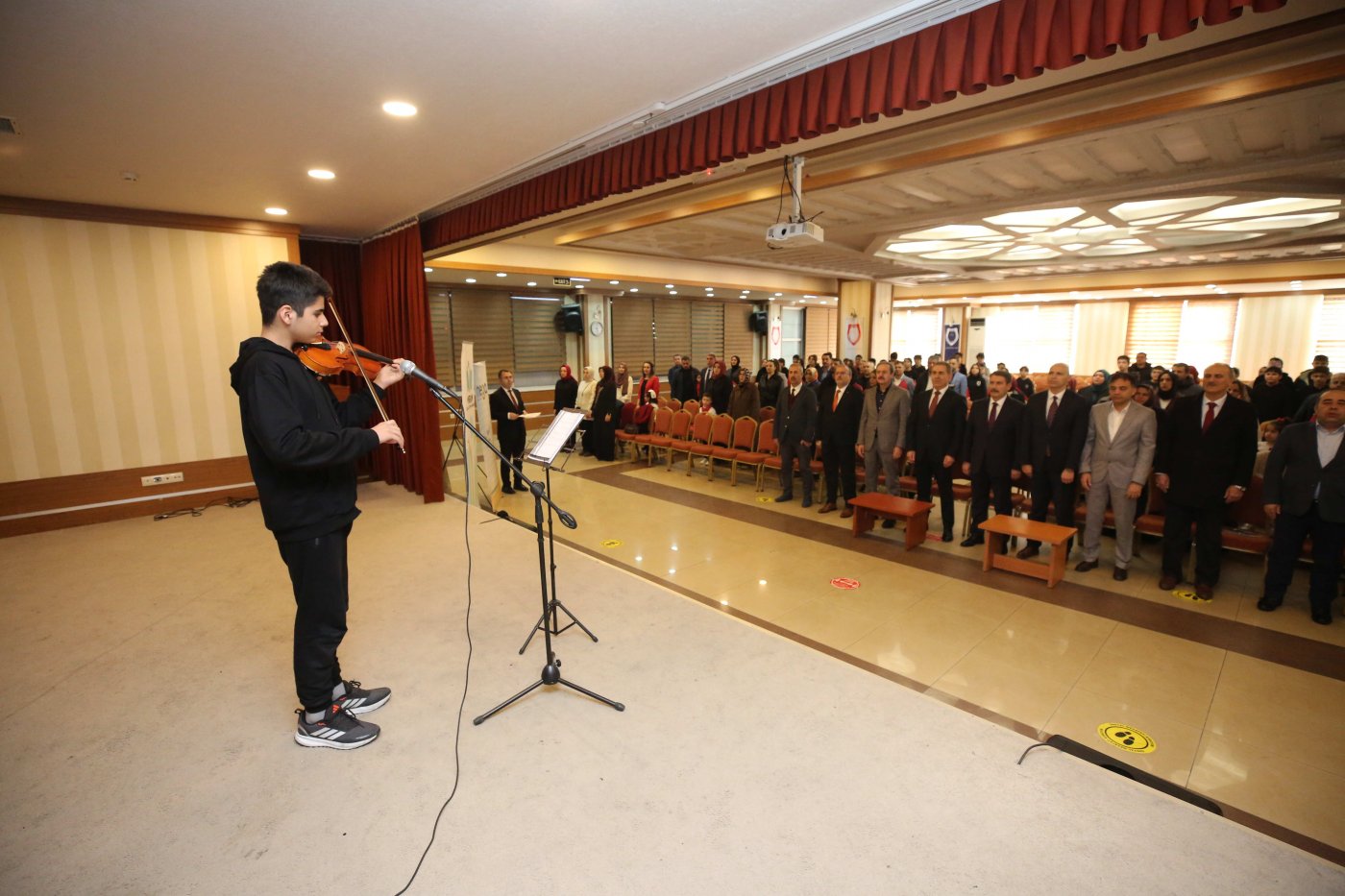 Salonu dolduran aileler ve öğretmenler, sahneye çıkan minik öğrencilerin heyecanına ortak olurken, yarışma boyunca duygu dolu anlar yaşandı. Öğrencilerin davul eşliğinde okudukları manilerle başlayan program, Mehmet Beğen Ortaokulu Öğrencisi Hakan Köş’ün kemanıyla çaldığı İstiklal Marşı ile devam etti. Anaokulu öğrencileri, henüz küçük yaşlarına rağmen İstiklal Marşı’nı büyük bir heyecan ve gururla okudu. Miniklerin milli marşımızı büyük bir ciddiyet ve coşkuyla seslendirmesi salondaki izleyicilerden uzun süre alkış aldı. Yarışmaya katılan tüm minikler birinci ilan edilip ödüllendirilirken, gösterdikleri cesaret ve performanslarıyla takdir topladı.