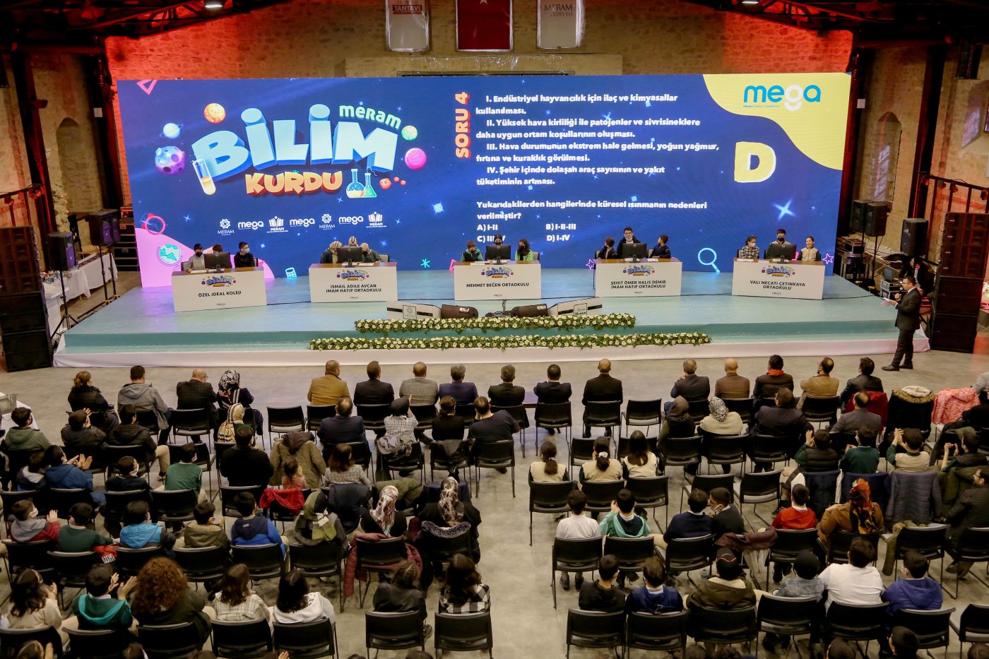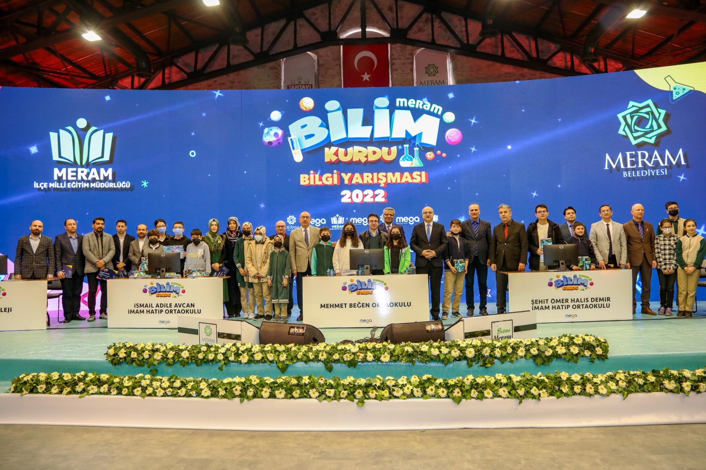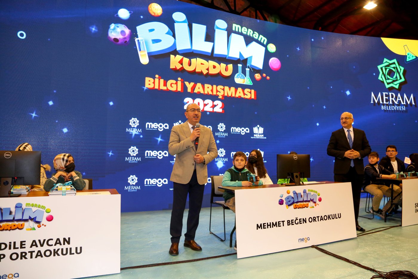 Meram’da ortaokul öğrencileri, Meram Belediyesi MEGA Projesi kapsamında hazırlanan Bilim Kurdu dergisindeki içeriklerden hazırlan yarışmada kıyasıya mücadele etti. Meram Bilim Kurdu yarışmasının ilk etabına 33 ortaokuldan 33 takım ve 132 öğrenci katıldı. Online olarak yapılan bu seçmelerin ardından finallere kalmaya hak kazanan 5 ortaokul Tantavi Kültür ve Sanat Merkezi’nde şampiyonluk için mücadele verdi. İsmail-Adile Avcan Ortaokulu, Mehmet Beğen Ortaokulu, Özel İdeal Koleji, Şehit Ömer Halisdemir İmam Hatip Ortaokulu ve Vali Necati Çetinkaya Ortaokulu takımları arasında geçen bilgi yarışması finalinde heyecan doruktaydı. Bilgi yarışması heyecanına Meram belediye Başkanı Mustafa Kavuş, İl Milli Eğitim Müdürü Seyit Ali Büyük ve Meram İlçe Milli Eğitim Müdürü Mustafa Koca’da eşlik etti.