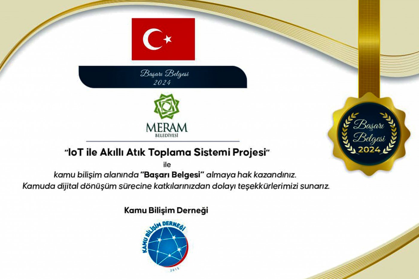 Meram Belediyesi, Kamu Bilişim Derneği tarafından düzenlenen 11. Kamu Bilişim Zirvesi’nde “IoT ile Akıllı Atık Toplama Sistemi” ödülünün sahibi oldu. Meram ödülü, yeraltı konteynerlerine takılan sensör sayesinde araçları sadece dolu olanlara yönlendirerek yakıt, enerji ve zaman tasarrufu sağlayan sistemle kazandı.